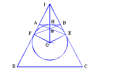 Problema 2.2.23. Se da trapezul ABCD cu baza mica [AB] si fie cercul C(O,r) tangent laturilor [BC], [AD], [AB] in punctele E,F,H. daca =AD( BC atunci dreptele AE,FB,IH sunt concurente.