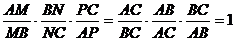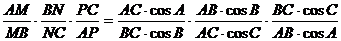 Pe de alta parte, cevienele AD,BN,CM, fiind concurente in punctul P conform teoremei lui Ceva, avem :
