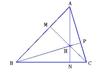 de unde, conform reciprocei teoremei lui Ceva, rezulta ca AN, BP, CM sunt concurente. Cazul unui triunghi obtuzunghic se va rezolva analog, tinand seama ca doua dintre inaltimi vor avea picioarele in afara laturilor respective.