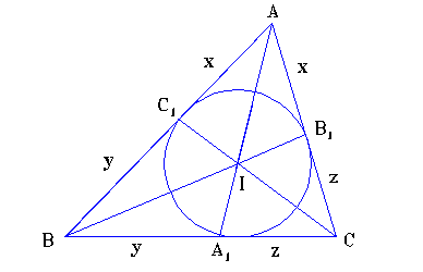 AC1= AB1 =p – a, BC1 = BA1 =p – b ,CA1=CB1=p – c.