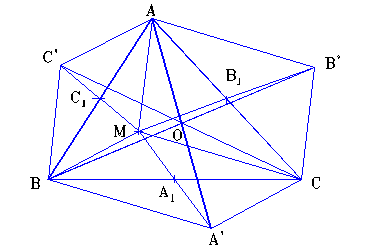 Analog , BMCA’ este paralelogram si, atunci, MB || CA’. Rezulta ca, patrulaterul ACA’C’ este paralelogram ( AC’ || CA’ si AC’ = CA’),si atunci AA’ CC’ = .