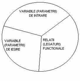 Variabilele (parametrii) de intrare reprezinta variabilele (parametrii) ale caror valori sunt cunoscute (sunt date sau estimate), variabilele (parametrii) de iesire reprezinta variabilele (parametrii) ce rezulta din prelucrare, iar relatiile functionale exprima legaturile (dependentele, relatiile) dintre variabilele de intrare si variabilele de iesire, care pot fi ecuatii (inecuatii) algebrice, ecuatii diferentiale, ecuatii integrale, etc..