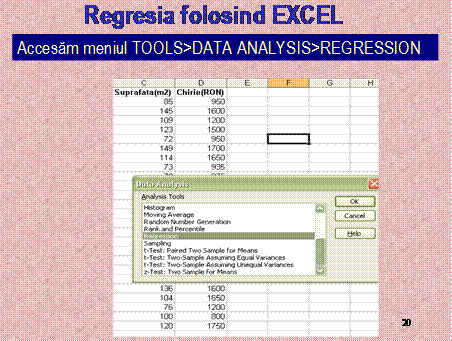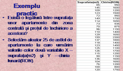 Panta dreptei de regresie este pozitiva, deci exista o legatura directa intre chirie si suprafata apartamentelor.