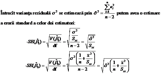 Erorile standard vor fi folosite la testarea semnificatiei parametrilor modelului de regresie.