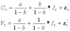 In primul rand se estimeaza venitul in functie de investitii si, venitul odata estimat se inlocuieste in ecuatia consumului ai carei parametrii se vor estima.