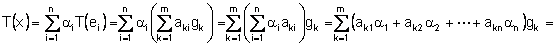 se numeste matricea operatorului T in bazele E si G. Notam A sau AT