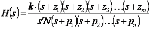 Se determina categoria careia ii apartine sistemul exprimānd functia sa de transfer in circuit deschis H(s) sub forma rationala a polilor si a zerourilor: