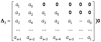 Conditia necesara si suficienta pentru care P(s) reprezinta un sistem stabil este ca toate elementele primei coloane a tabelului sa fie de acelasi semn ca si a0, pozitiv prin ipoteza.