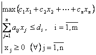 Sa se determine xj cantitatile de materii prime Mj ce trebuie sa intre in componenta produsului astfel incat costul lui sa fie minim. Modelul matematic al problemei formulat ca o PPL este: