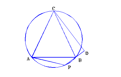 Fie ABC un triunghi isoscel (AC=BC) si P un punct pe arcul AB al cercului circumscris triunghiului, ce nu contine punctul C. Fie D proiectia lui C pe PB. Demonstrati ca PA+PB=2PD.