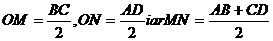 Demonstratie:Fie AB si CD bazele trapezului, MN linia