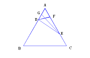 Fie ABC un triunghi echilateral si D, E puncte arbitrare pe laturile [AB], respectiv [AC]. Daca DF,EG (cu FIAE, GIAD) sunt bisectoarele interioare ale unghiurilor triunghiului ADE, demonstrati ca suma ariilor triunghiurilor DEF si DEG este cel mult egala cu aria triunghiului ABC. Explicati cand are loc egalitatea.