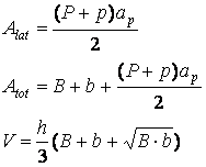 (B - aria bazei mari, b - aria bazei mici, h - înăltimea)