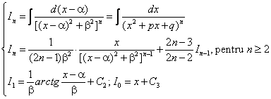 formula de recurenta pentru calculul lui In, n N.