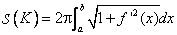Fie f : [a, b] R o functie derivabila pe [a, b] si cu f' continua (f C1([a, b])), atunci suprafata S a corpuui K obtinut prin rotirea graficului lui f īn jurul axei Ox se calculeaza prin formula: