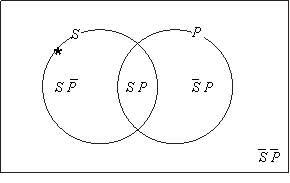 Propozitia SaP este adevarata in cazurile (1) si (2), in rest, ea este falsa. Propozitia SeP este adevarata doar in cazul (5) si falsa in rest. Propozitia SiP este falsa in (5) si adevarata in rest, iar SoP este adevarata in (3), (4) si (5) si falsa in rest.