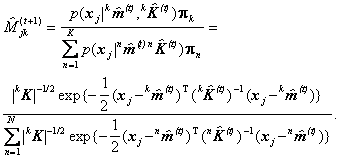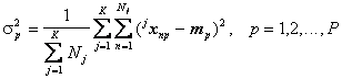 unde jm este media clasei wj si Kj este matricea de covarianta a clasei wj. Media clasei poate fi estimata folosind ecuatia (9.3) sau (9.4). Pentru matricea de covarianta a clasei wj, putem folosi ecuatia: