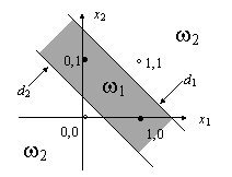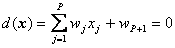 Suprafata definita de ecuatia (9.8) este perpendiculara pe dreapta ce uneste punctele im si jm pe care o intersecteaza la jumatatea distantei dintre cele doua puncte. Īn cazul unui spatiu al formelor bidimensional, suprafata se reduce la o dreapta. Daca spatiul este tridimensional, suprafata este un plan, iar pentru dimensiuni ale spatiului, P > 3, vom denumi aceasta suprafata hiperplan