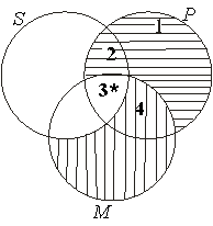 Termenul S poate figura in oricare din pozitiile (1), (2) sau (3) pentru ca in fiecare din ele propozitia SaM este adevarata. Fiecare pozitie va da, insa, un alt raport intre S si P: