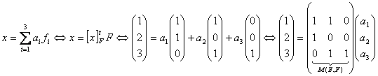 Definitie a1,¼,an se numesc coordonatele vectorului x in baza E si vom nota