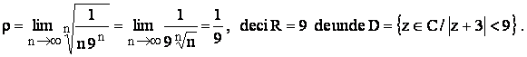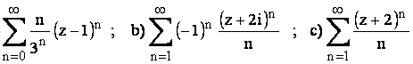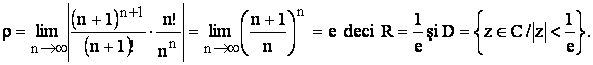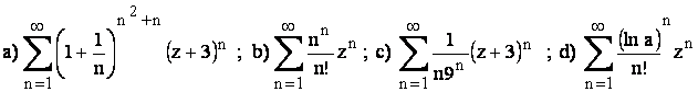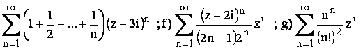 Sa se determine discul de convergenta pentru urmatoarele serii de puteri complexe: