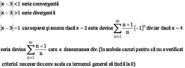 Se deduce de aici ca seria de puteri data este convergenta pe multimea :