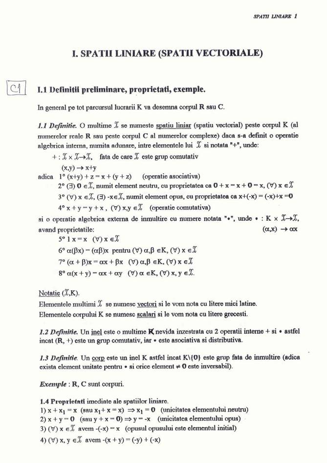 Spatii liniare, spatii vectoriale
