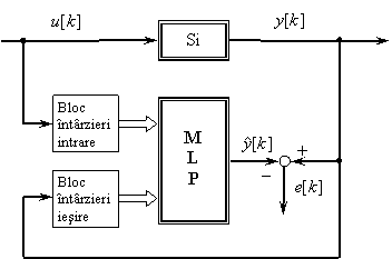 pentru care se realizeaza identificarea cu ajutorul retelei neuronale dinamice din figura.