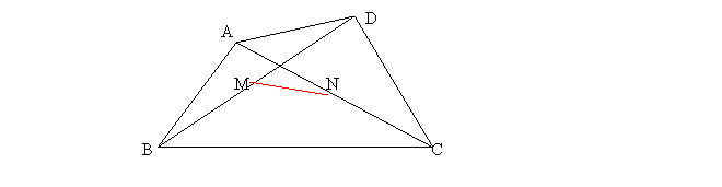 Intr-un patrulater segmentul ce uneste mijloacele celor doua diagonale este egal cu semidiferenta bazelor ( MN=1/2(BC-AD));