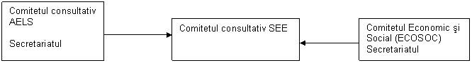 Contactele tot mai dense dintre Comitetul consultativ al AELS si Comitetul Economic si Social European a dus la cooperarea tot mai stransa dintre partenerii sociali ai AELS si cei ai uniunii, informal aceasta cooperare incepand din 1975, ea formalizandu-se abia in 1994, odata cu intrarea in vigoare a tratatului de instituire a Spatiului Economic European. Articolul 36 al acestui tratat stipula infiintarea Comitetului Consultativ al SEE, constand dintr-un numar egal de membri ai Comitetului consultativ al AELS si ai EcoSoc.