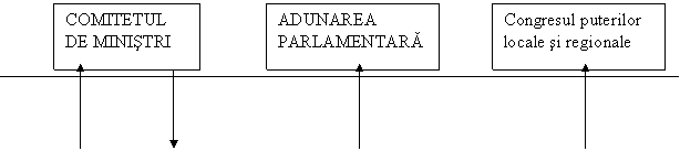 Dupa cum reiese din schema de mai sus, structura Consiliului Europei cuprinde doua tipuri de institutii Comitetul Ministrilor si Adunarea Parlamentara, care ii asigura conducerea, pe de o parte, iar pe de alta Curtea Europeana a Drepturilor Omului, care colaboreaza la procedura judiciara de aparare a drepturilor omului.