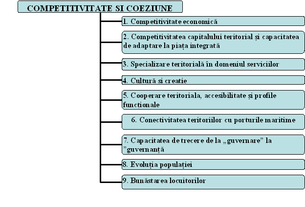 Investitii īn ICT, cheltuieli pentru capitalul uman (educatie universitara si postuniversitara), cheltuieli pentru C&D, centre de cercetare īn stiinta si tehnologie (parcuri stiintifice, centre de inovare), patente EPO si USPTO, firme High-Tech, servicii avansate, RSII, telecomunicatii |