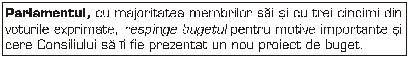 Parlamentul examineaza in fiecare an, inaintea primei lecturi a proiectului de buget, executia bugetara in curs.