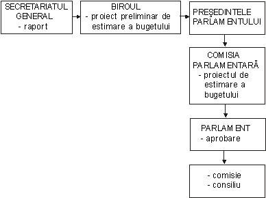 Elaborarea bugetului propriu. Biroul, pe baza raportului Secretariatului General, intocmeste proiectul preliminar de estimare a bugetului Parlamentului European. Presedintele il transmite comisiei parlamentare competente care stabileste proiectul de estimare a bugetului si raporteaza Parlamentului. In termenul stabilit de Presedinte se depun amendamente, care sunt avizate de comisia competenta. Parlamentul adopta estimarea bugetului care se transmite Comisiei si Consiliului.
