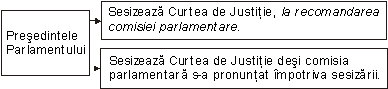 Atunci cand Presedintele Parlamentului introduce o actiune la Curtea de Justitie impotriva recomandarii comisiei parlamentare, obligatoriu trebuie sa sesizeze Parlamentul cu privire la decizia de mentinere a actiunii.