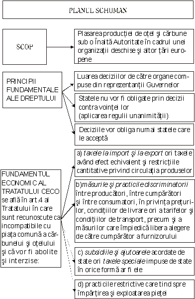 Startul constructiei europene a fost dat de ministrul de externe francez Robert Schuman care, la 9 mai 1980, intr-un discurs a propus crearea unei "inalte autoritati" supranationale, care sa dirijeze productia si desfacerea otelului si carbunelui in Europa. La baza propunerii lui Schuman se afla planul elaborat de Jean Monnet. Ideea era mai veche si fusese lansata de Konrad Adenauer, cancelarul demo-crestin care a reconstruit Germania. Acesta, in 1949 a propus o "asociere de drept international pe baza de cooperare" in care "Germania ar participa cu regiunea Ruhr, Franta cu minereul din Lorena, Franta, Germania, Saarland, Luxemburg, Belgia cu industriile lor grele" [3].