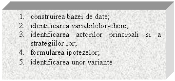 o formularea de probleme cheie (ipoteze) despre viitor.