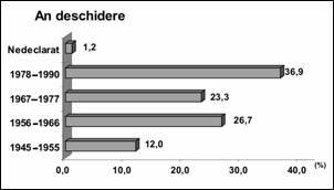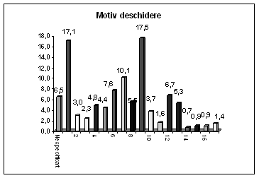 Procentele scrise cu italice reprezinta % din totalul dosarelor deschise cu acel motiv pe întreaga perioada studiata (1945-1989).