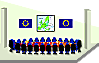 Le Parlement européen est composé de 732 députés élus dans les 25 pays membres de l'Union européenne élargie. Depuis 1979, les députés sont élus au suffrage universel direct pour une durée de 5 ans. |