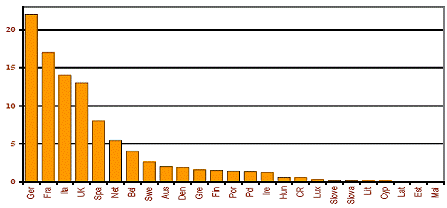 - 1% din fondurile rezultate vor ramâne în statele membre unde fondurile au fost strânse, restul sumei fiind redistribuita între statele membre în functie de anumite criterii: suprafata agricola, populatia angajata în agricultura si PIB pe locuitor;