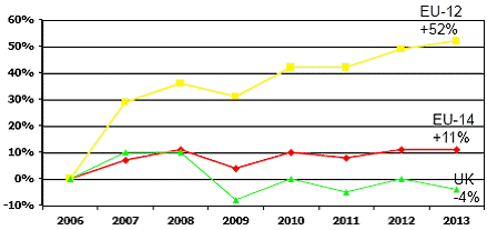 . În iulie 2000 s-a semnat un acord comercial cu Mexicul care confera exporturilor UE acelasi tratament ca si celor din SUA si Canada; UE a eliminat toate TV de import din 2003, iar mexicul va face ecest lucru din 2007;