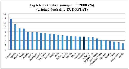 Cea mai mare rata a somajului in 2008 (fig.6) este atinsa de Estonia cu 13,8 urmata de Spania cu 11,3 apoi de Slovacia cu 9,5 procente.