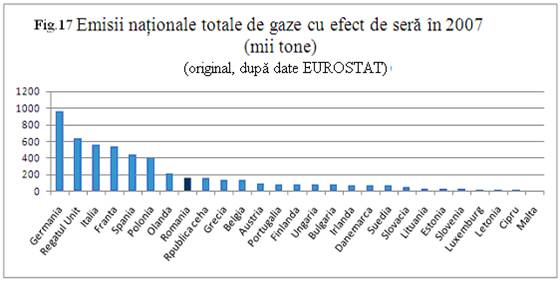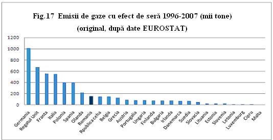 Romania se situa pe locul opt cu 151,7 mii tone de gaze cu efect de sera emise pe perioada anilor 1996-2007.