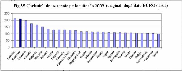 Letonia este primul stat al UE care are cele mai ridicate cheltuirli de uz casnic pe locuitor (212,2 unitati) urmata fiind de Romania cu 209,8 unitati iar Germania si Italia se afla pe ultimele locuri cu cate 103 si respectiv 99,3 unitati. Surprinzator este faptul ca statele UE foarte dezvoltate ca Germania, Belgia, Luxemburg ocupa pozitii terminale desi puterea financiara este mai mare.