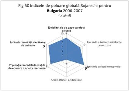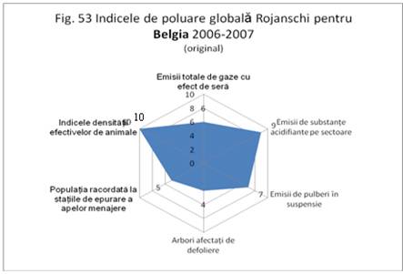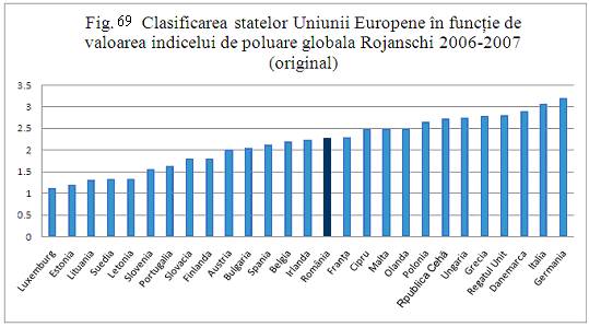 Astfel, in urma prelucrarii datelor oferite de EUROSTAT si a calcularii indicelui de poluare globala Rojanski a fost obtinuta clasificarea celor 27 de state in grupele II (1,1-2) mediul natural usor supus activitatii umane, in limitele admisibile, III (2,1-3) mediul natural supus activitatii umane, provoaca stare de discomfort organismelor animale si IV (3,1-4) mediul natural afectat de activitatea umana, produce tulburari ale formelor de viata. De mentionat este faptul ca nici un stat al Uniunii Europene nu se incadreaza in prima grupa valorica, in care mediul natural este neafectat de activitatea antropica.