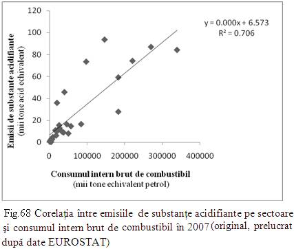 1 Corelatia intre emisiile de substante acidifiante si consumul intern brut de combustibil