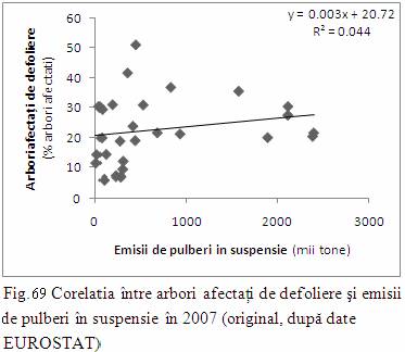 2. Corelatia intre arbori afectati de defoliere si emisii de pulberi in suspensie
