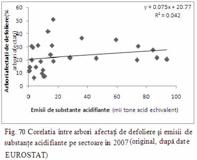 3. Corelatia intre arbori afectati de defoliere si emisii de substante acidifiante