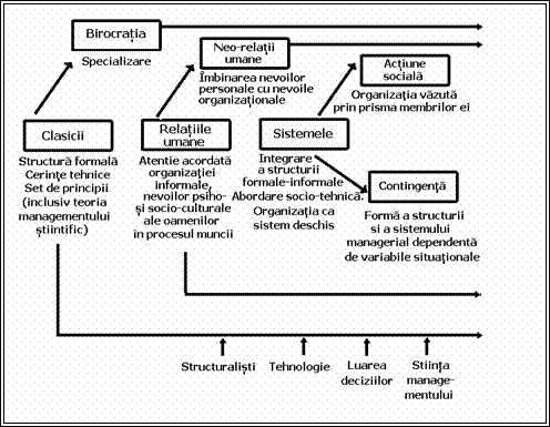Abordarile actuale sau mai recente: teoria contingentei, teoria actiunii sociale etc. (L. Mullins, 1989 - Management and Organisational Behaviour, p. 30-50).