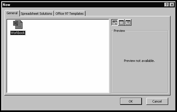 In this dialog box you have a choice to create a new Workbook or use the Spreadsheet Solutions tab.
